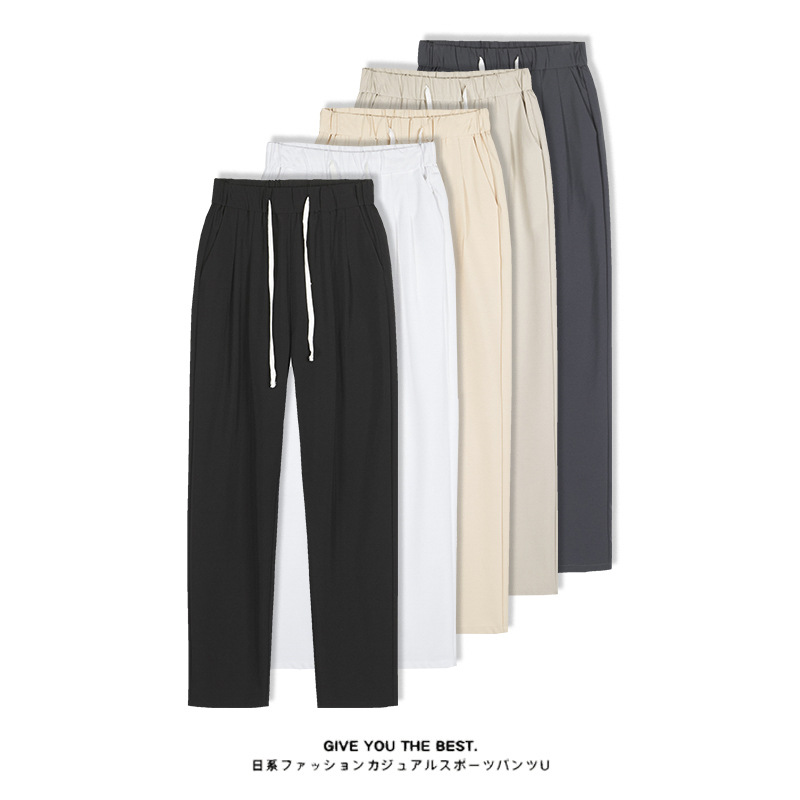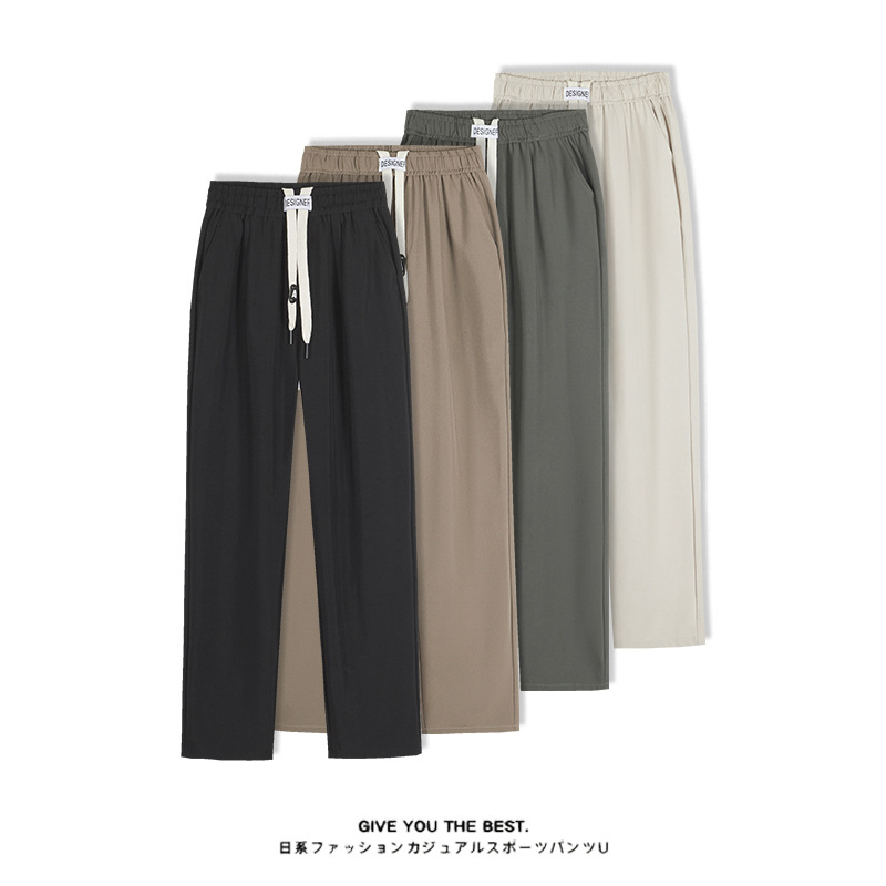 夏の新型男子ストレートズボン氷糸薄手速乾カジュアルパンツ男性ゆるいワイドパンツ垂直感スポーツパンツ