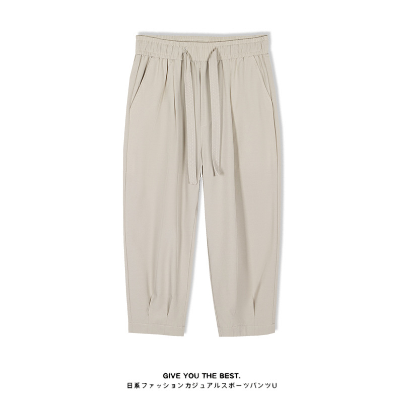 夏の新型七分ズボンの男性のひものカジュアルなズボンのまっすぐな筒の修身のスーツのズボンの男性の韓国版のファッションのスポーツの中でズボン