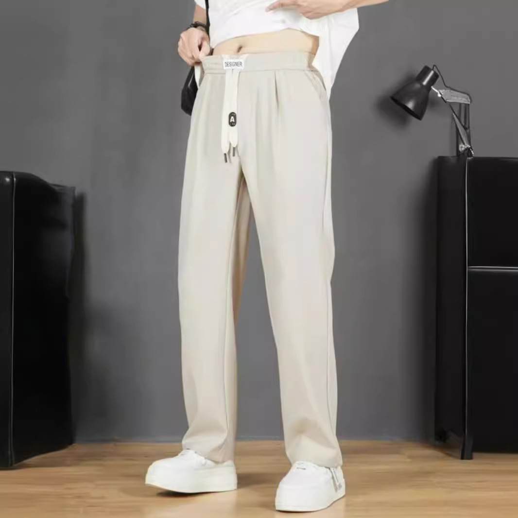 氷のズボンの男性の夏の薄いタイプのまっすぐな筒のゆったりしている感じのエアコンのズボンの広い足のアイロンをかけない運動のレジャーのズボン