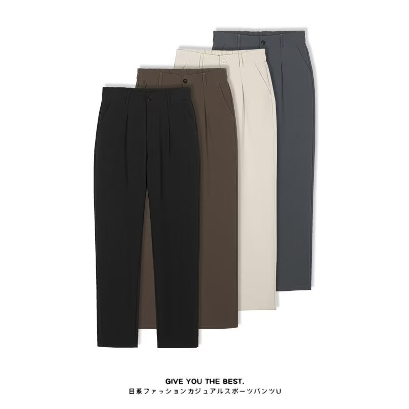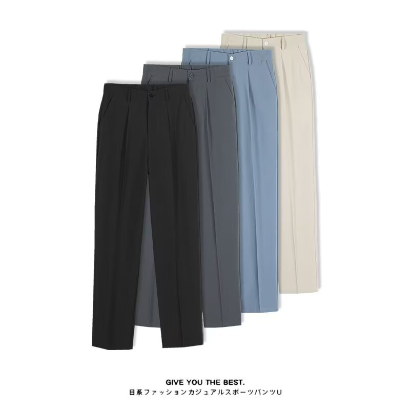 ストレートパーマフリービジネス軽熟風スーツパンツ男性高級カジュアル垂感ゆったりタイプ青年純色小ズボン