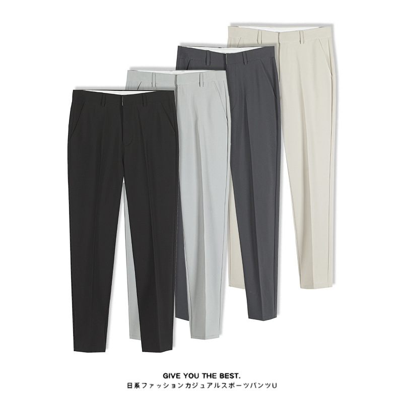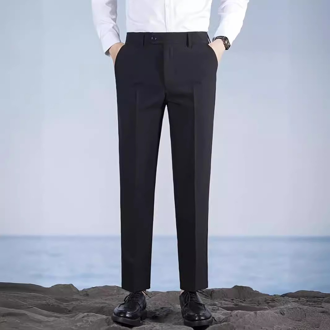 2024春夏の薄いタイプのビジネスの小さいズボンの男性のまっすぐな筒の修身はしわに抵抗してアイロンをかけません。