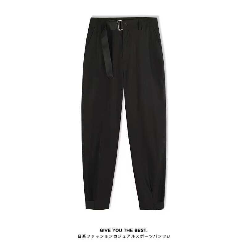 英倫風マジックテープのゆったりとした足のカジュアルなズボンの男性のひものズボンの薄い学生の9分のズボンの暗い鉄は男性のズボンの潮を掛けます。