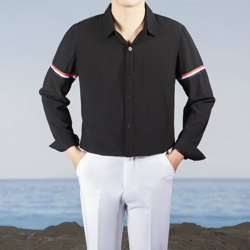 英倫雅痞男服2024新型潮痞帅tbシャツ長袖高級感上着春秋タイプインナーシャツ