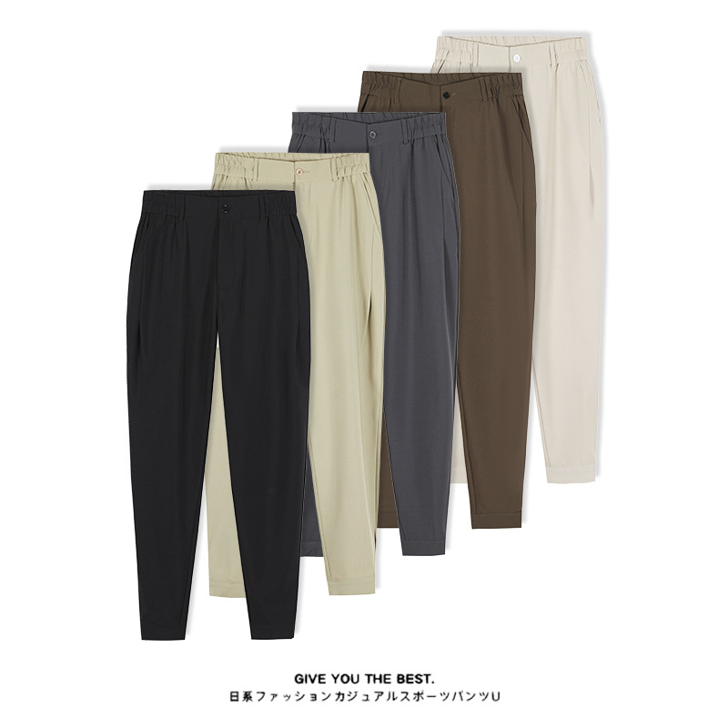 カジュアルな修身の9分のズボンの男子学生は足のマジックを束ねてハーレムのズボンを貼ります。