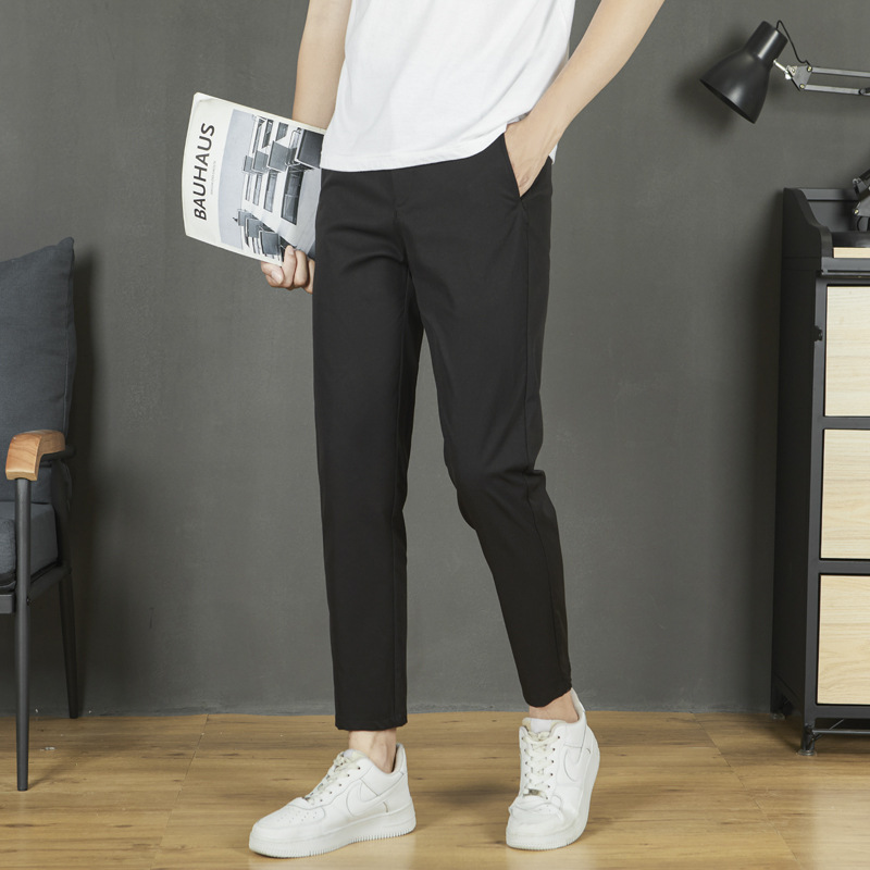 小さいズボンの男性の夏の薄いタイプの韓国版の潮流はテーパーの9分のズボンの英倫を修理します。