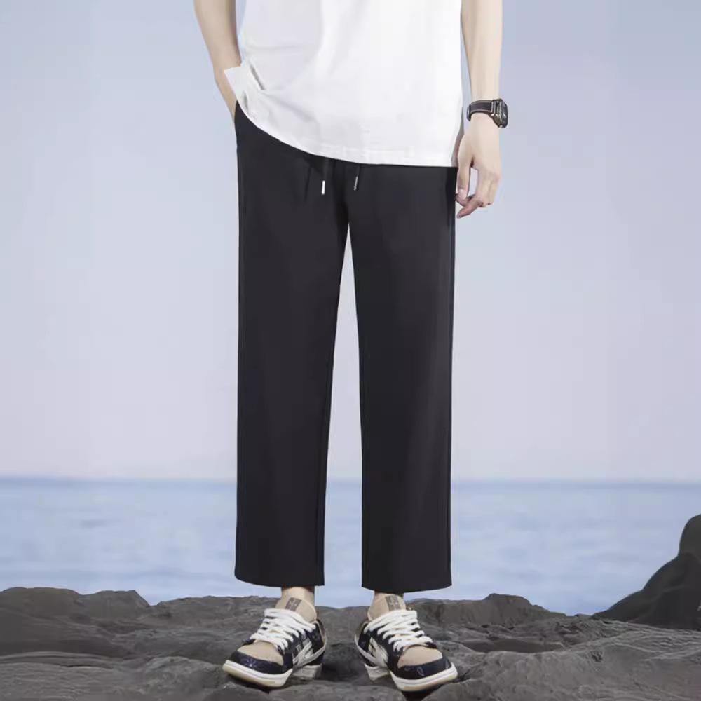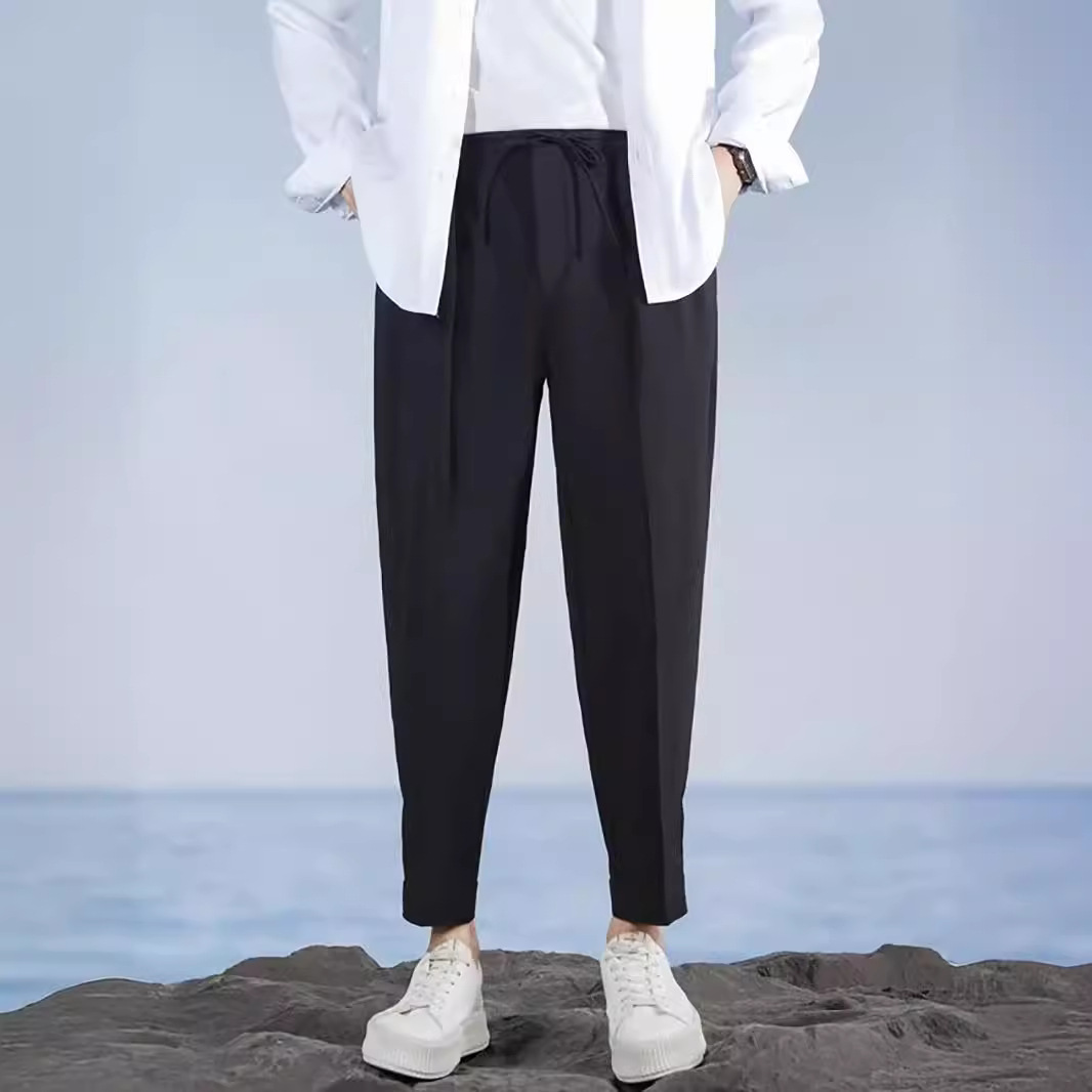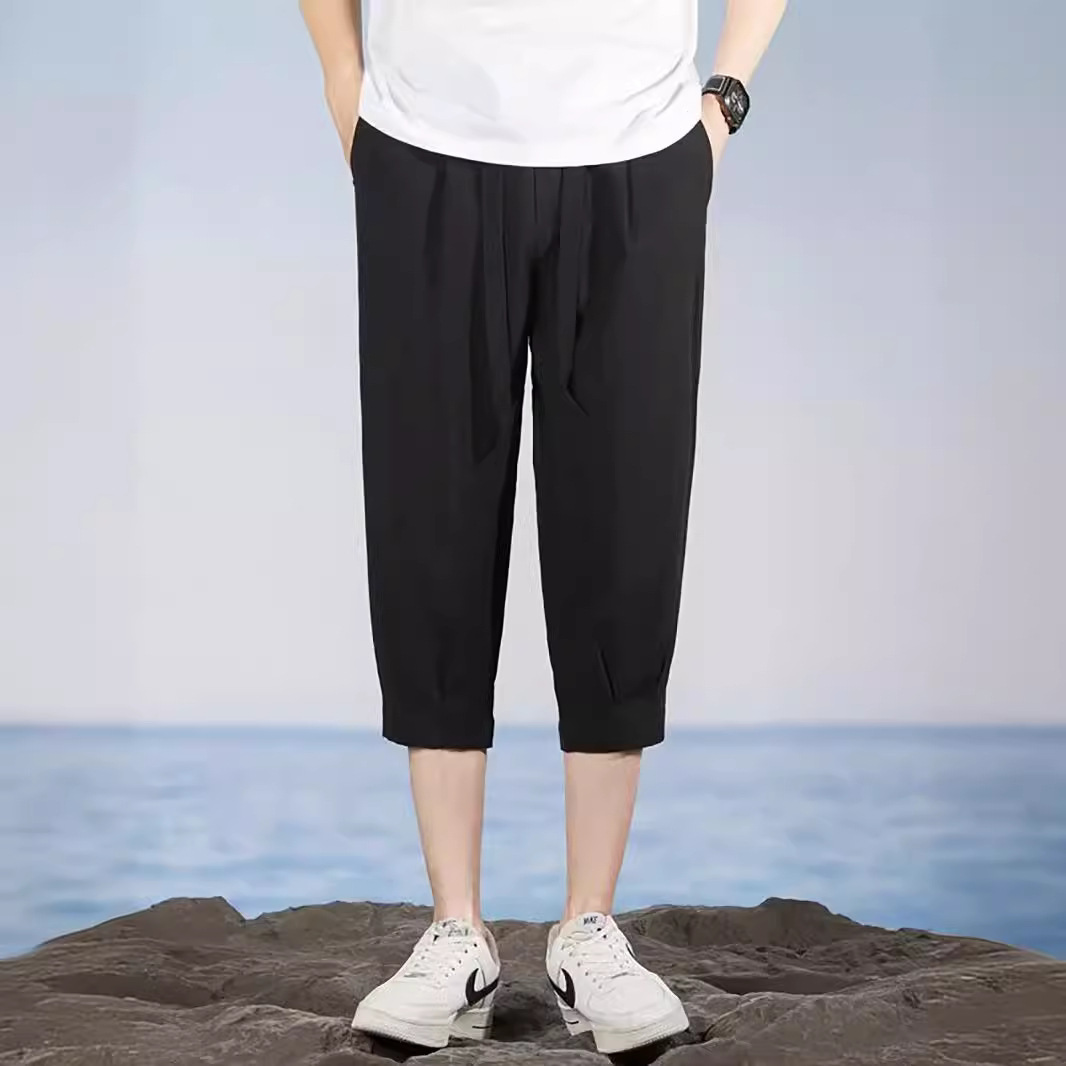 9分のズボンの男性の夏の薄いタイプのストレートのゆったりしたカジュアルなズボンのペンダント感の大きい足のズボンは腰を緩めてひもの小さいズボンを引き出します。