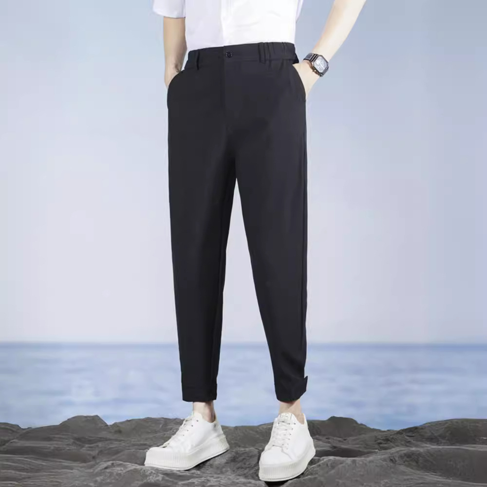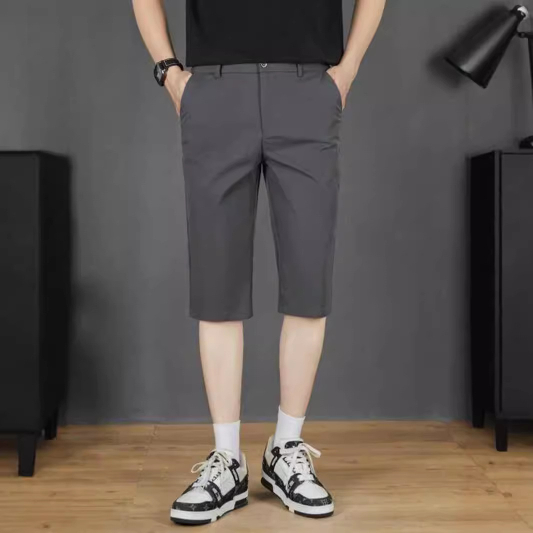夏の氷の糸の7分のズボンの男性の大きいサイズの韓国版の通勤する純色のスーツの半ズボンのファッションのカジュアルな修身のストレートなズボン