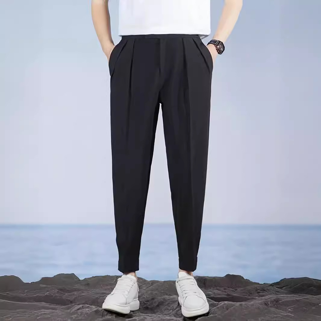 新商品のパーマを免除してしわの小さいズボンの男性の英倫の純色のカジュアルなスーツの韓国版の潮流の修身のテーパーの小さい足のズボン
