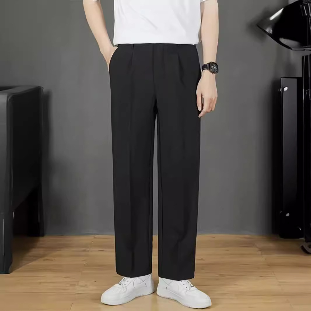 2024新型韓国版ズボン男性タイプの夏のファッションは、地面を引きずるストレート感のあるカジュアルなズボンのスーツのズボン男性に合わせています。