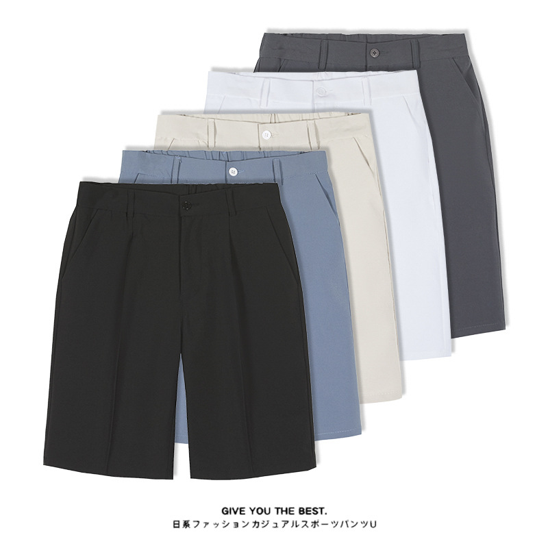 夏の氷糸の薄いタイプの5分のズボンの男子学生の直筒の外はカジュアルなスーツの半ズボンの男子学生を着て合わせます。