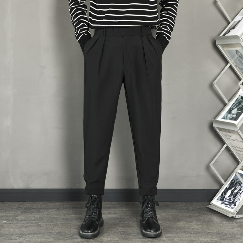 秋の新しいマジックテープの男性の高級感のあるズボンの9分のスーツのズボンのハーレムのズボンの男性