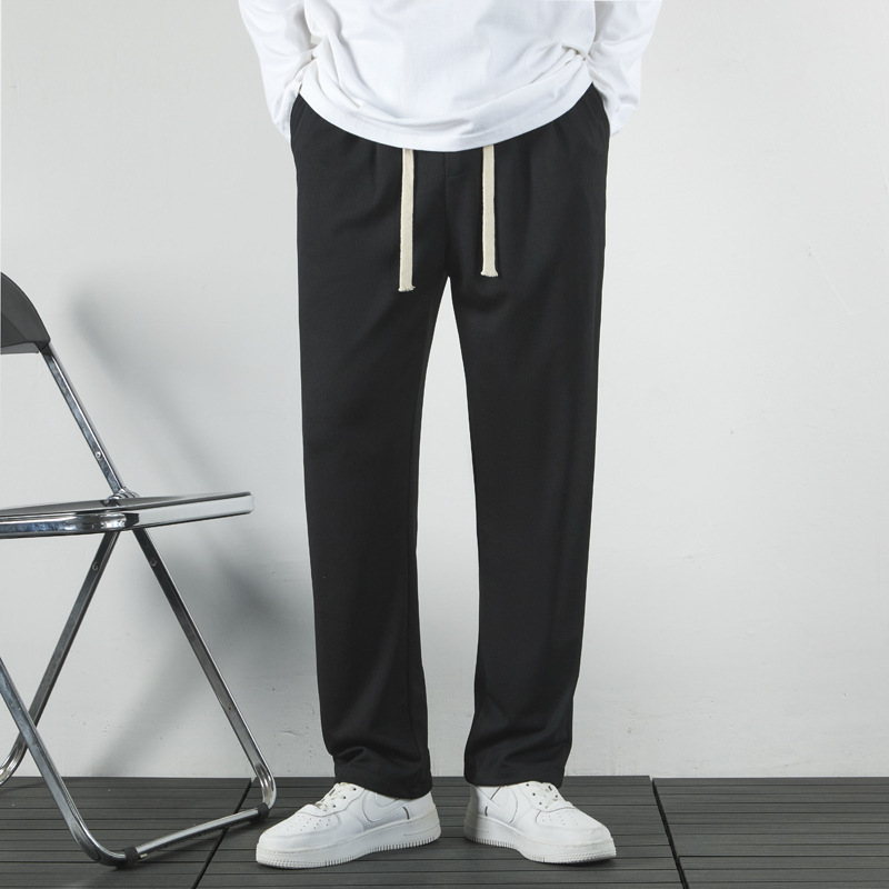 黒のストレートカジュアルなズボンの男性の垂れ下がった感じのズボンのアメリカの高い街の韓国版のファッションのゆったりしている衛のズボンのスポーツのズボンの男性