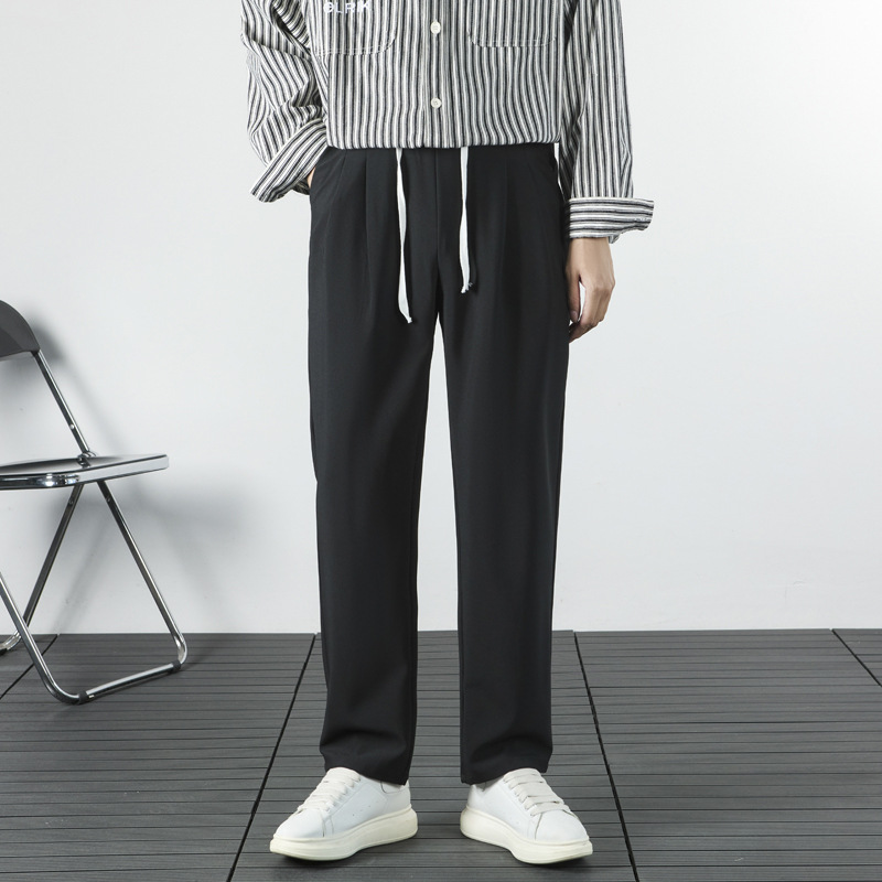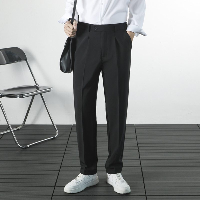 秋のズボンの垂れ下がった感じの男性の2024新型の修身高級感のビジネスのカジュアルなストレートの青年のスーツのズボン