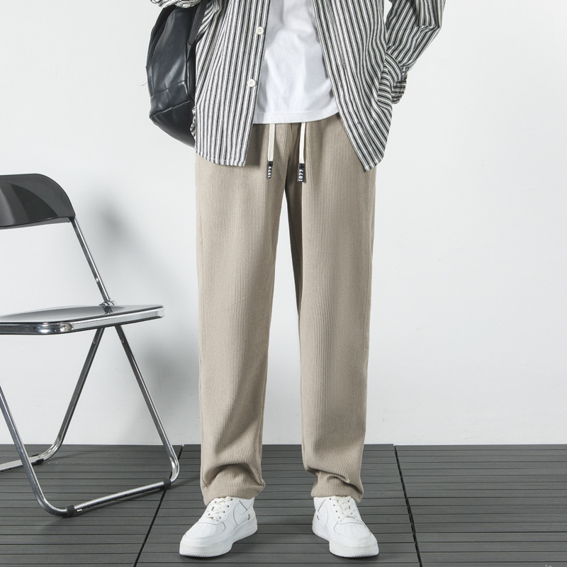 秋冬の黒いコーデュロイのズボンの男性の垂感のストレートのカジュアルなズボンの高い街の韓国版のファッションの衛のズボンのスポーツのズボン