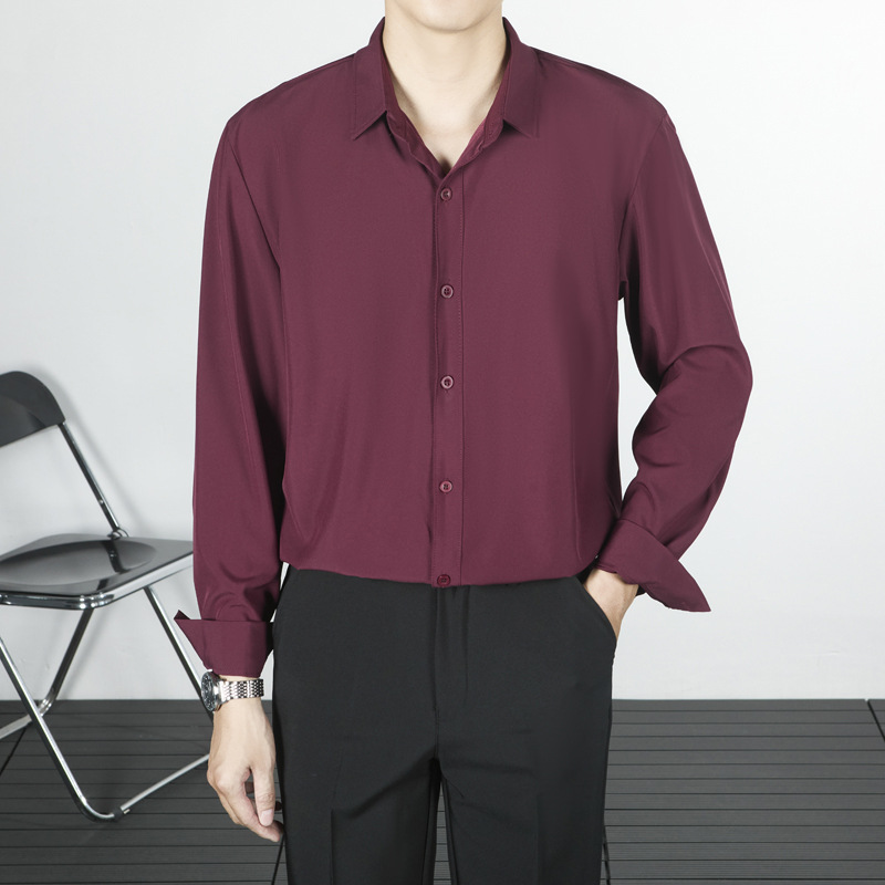 ワインレッドのシャツ男長袖韓国版修身パーマフリービジネスカジュアル職業服装シャツ新郎兄弟団ドレス