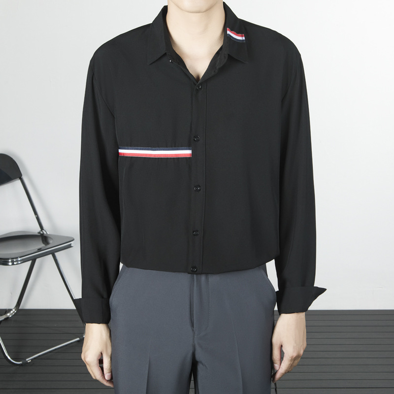 潮牌のごろつきのかっこいい長袖のシャツの男性の春と秋の中に黒いシャツの韓国版のファッションのシンプルな白い寸のシャツの男性を掛けます。