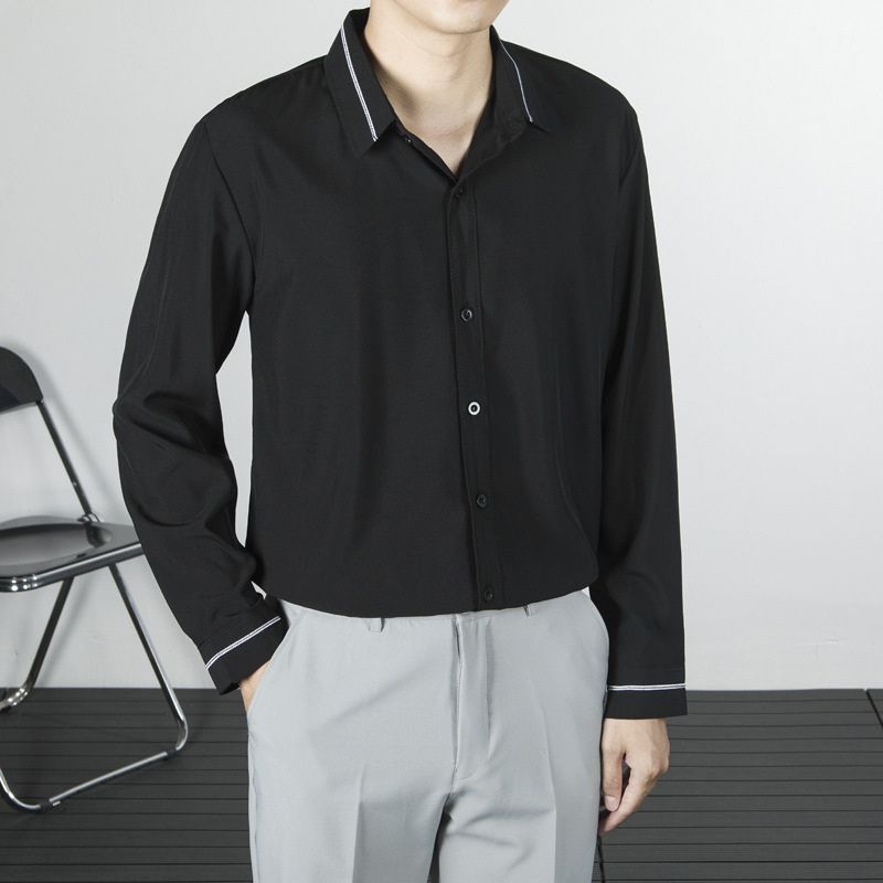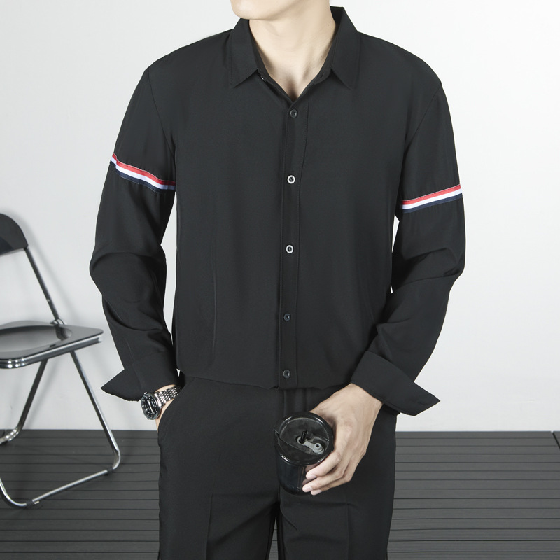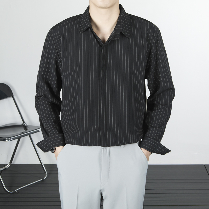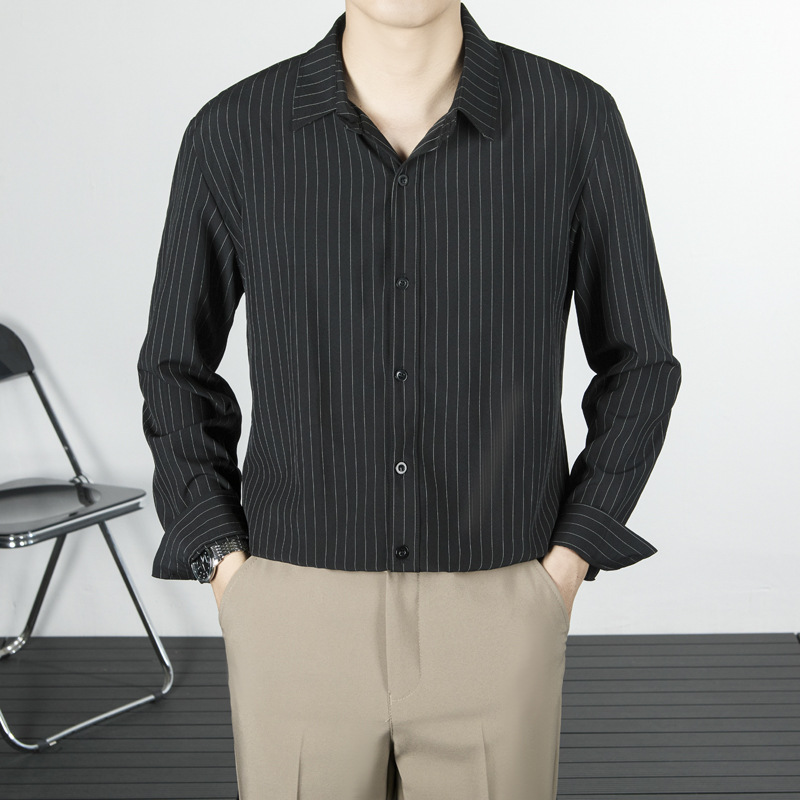 軽熟風黒縞長袖シャツ男性韓国版ファッション高級感カジュアル抗シワ無熱シャツ男性