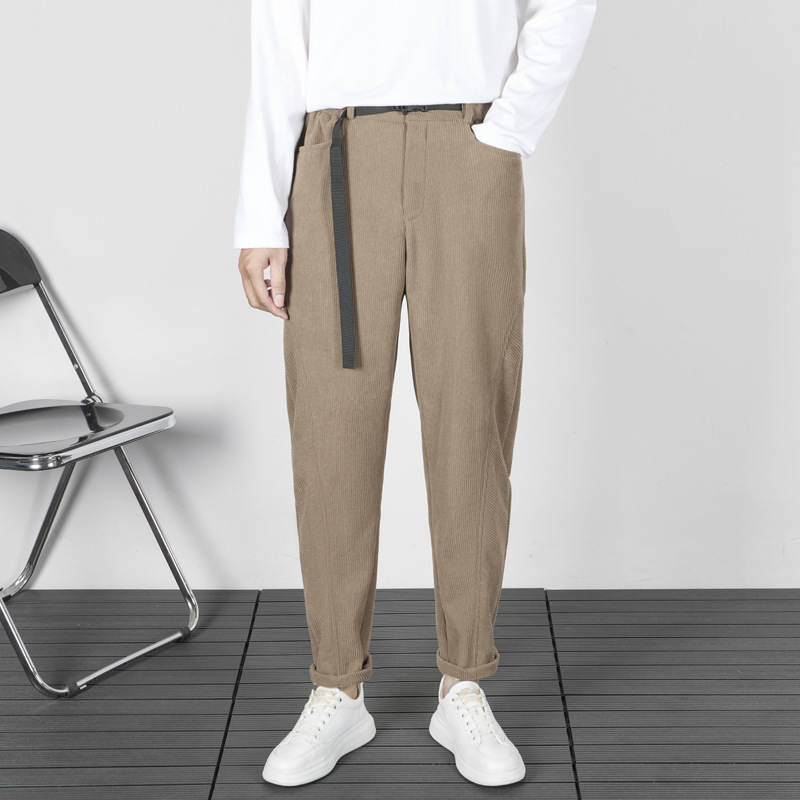 コーデュロイのズボンの男性春と秋のテーパードストレートカジュアルのズボンの高級感があります。