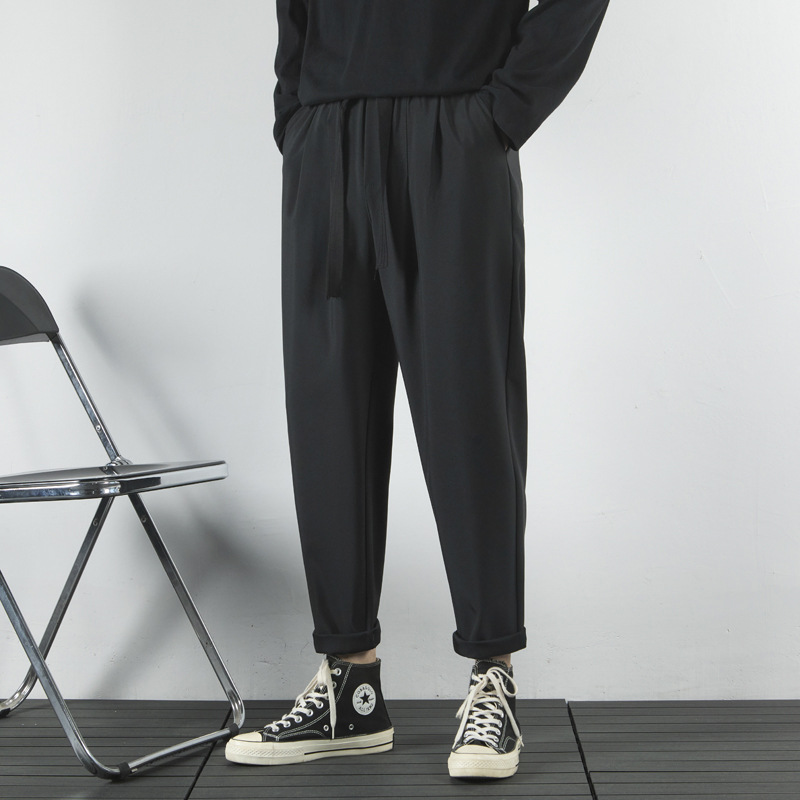 秋のズボンの男性の直筒はカジュアルなズボンの男性の高級な垂れ下がった感じの黒色のスーツのズボンの9分のズボンの男子学生を修理します。