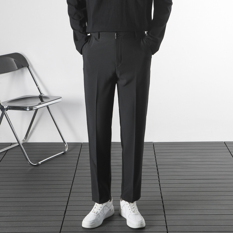 秋の高級感抗シワ無熱ズボン男性九分小直筒微ゆるい通勤カジュアルスーツズボン