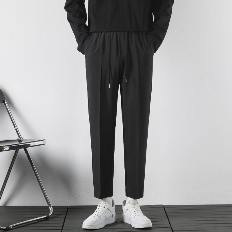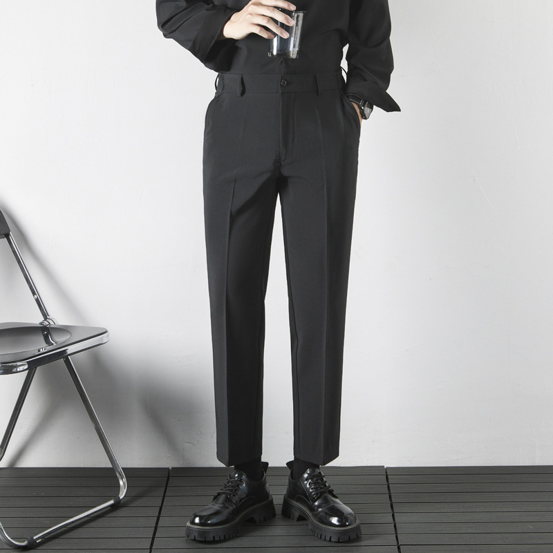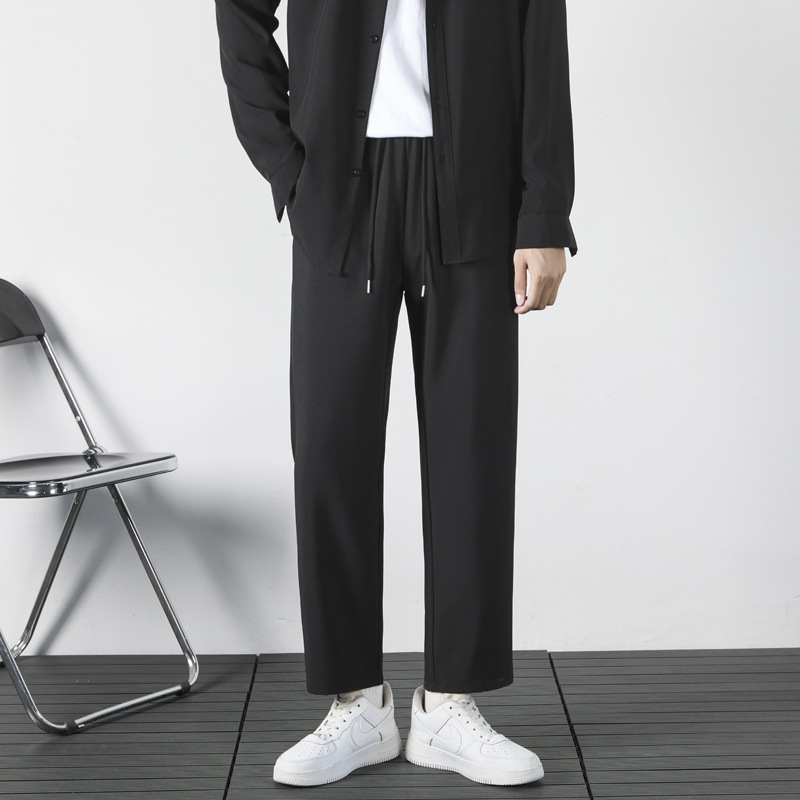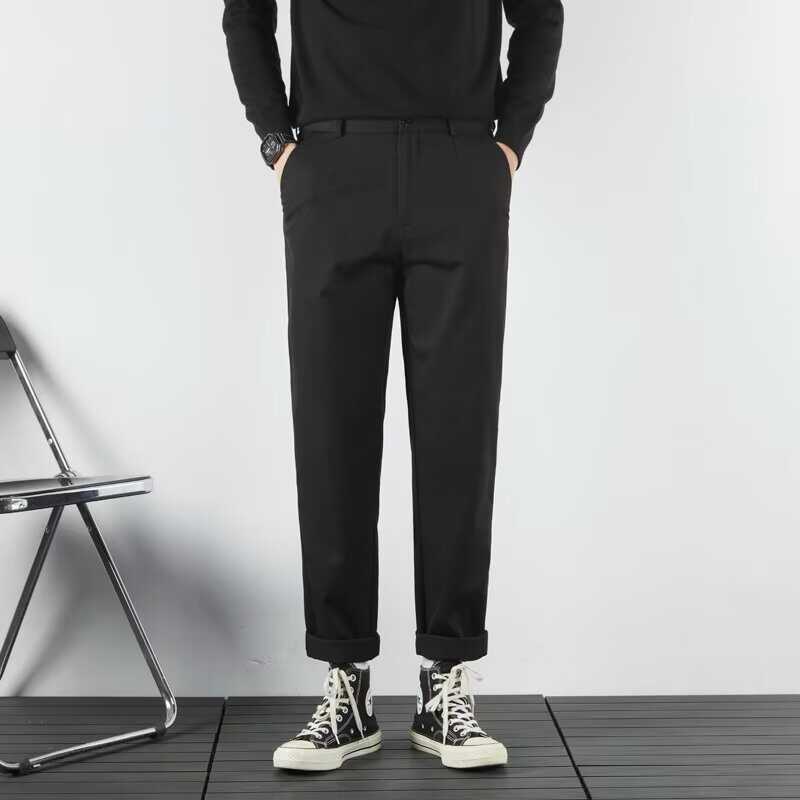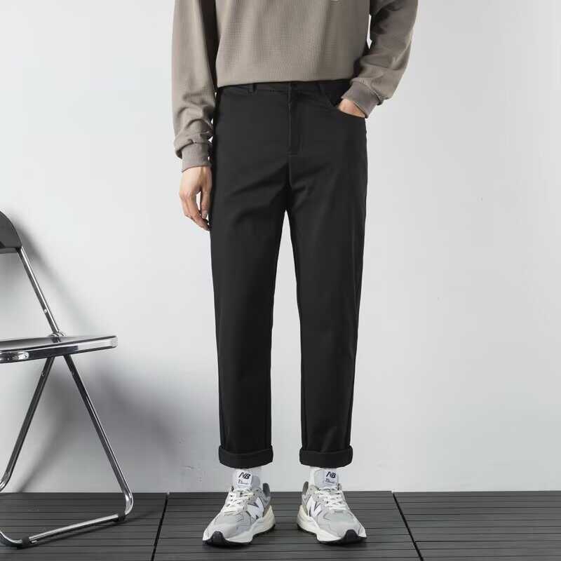ビジネス九分直筒小西ズボン男性2024春秋新作シンプルで快適なテーパー黒カジュアルパンツ