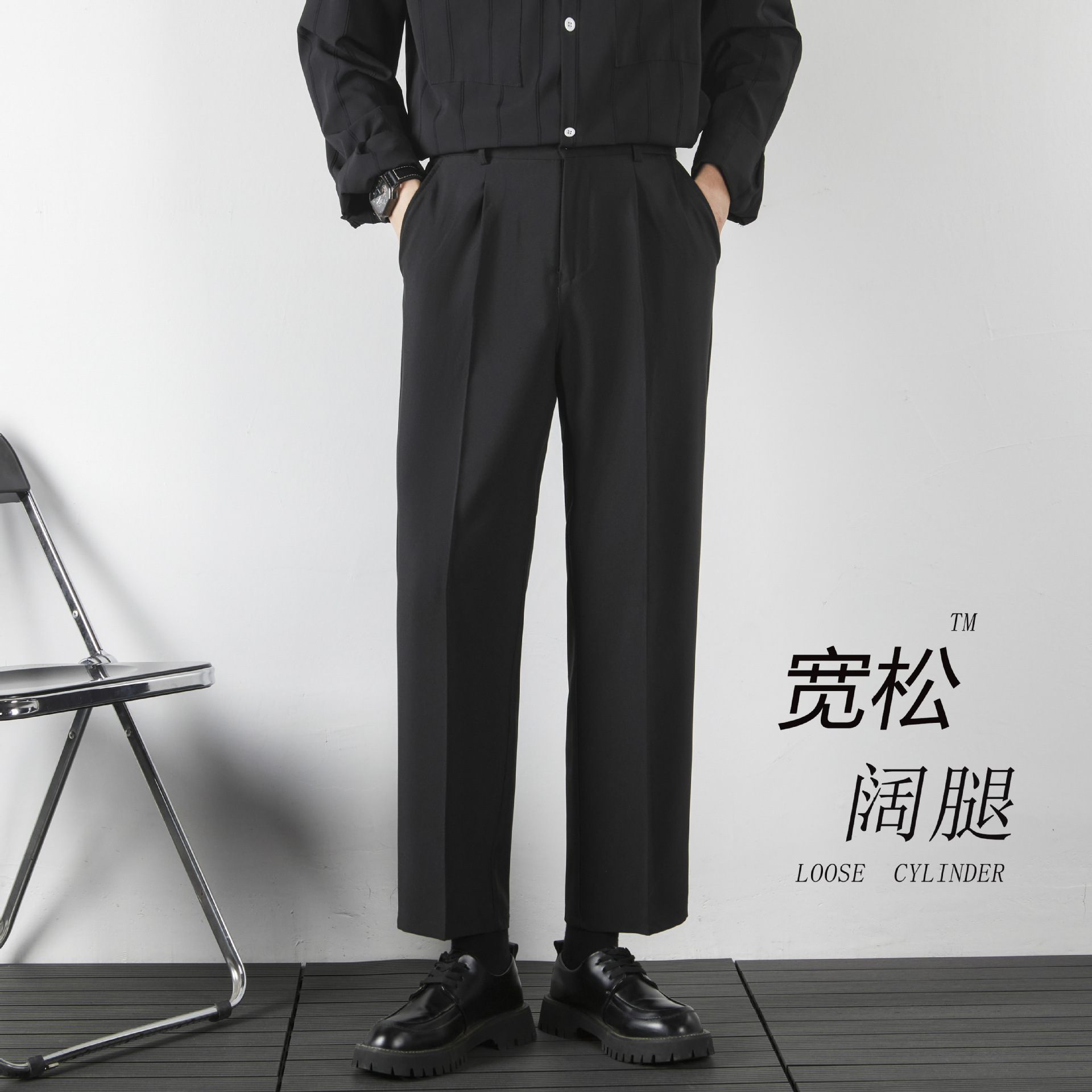 カジュアルなズボンの男性の直筒のゆったりした香港風のペンダント感の韓国版の広い足のスーツのズボンのズボンの男性の9分のズボン