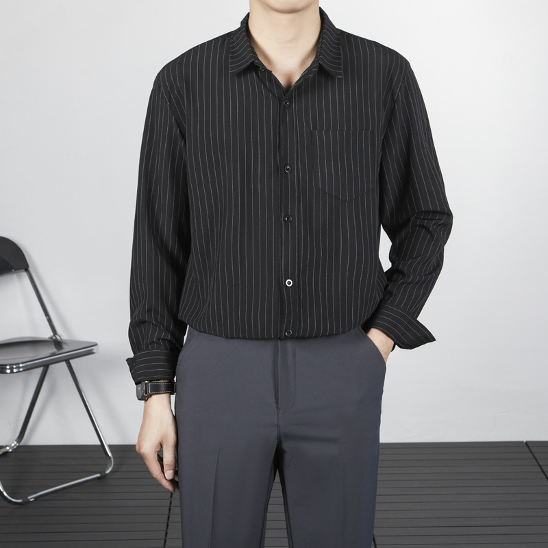 秋のストライプのシャツの男性の長袖の韓国版の新型のしわに抵抗します。