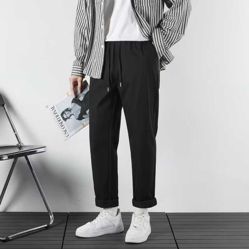 日系カジュアルパンツ男性春秋韓国版トレンドシンプルなスリム足9分テーパードパンツ
