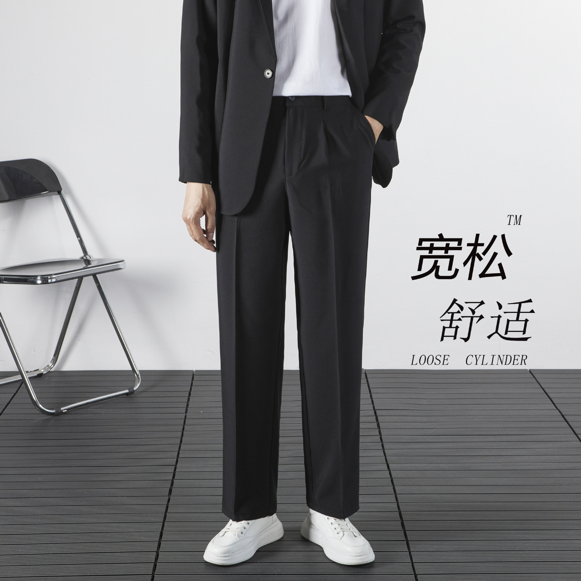九分西ズボン男秋軽熟風修身小直筒カジュアルズボン男士ビジネス通勤垂感スーツ長ズボン