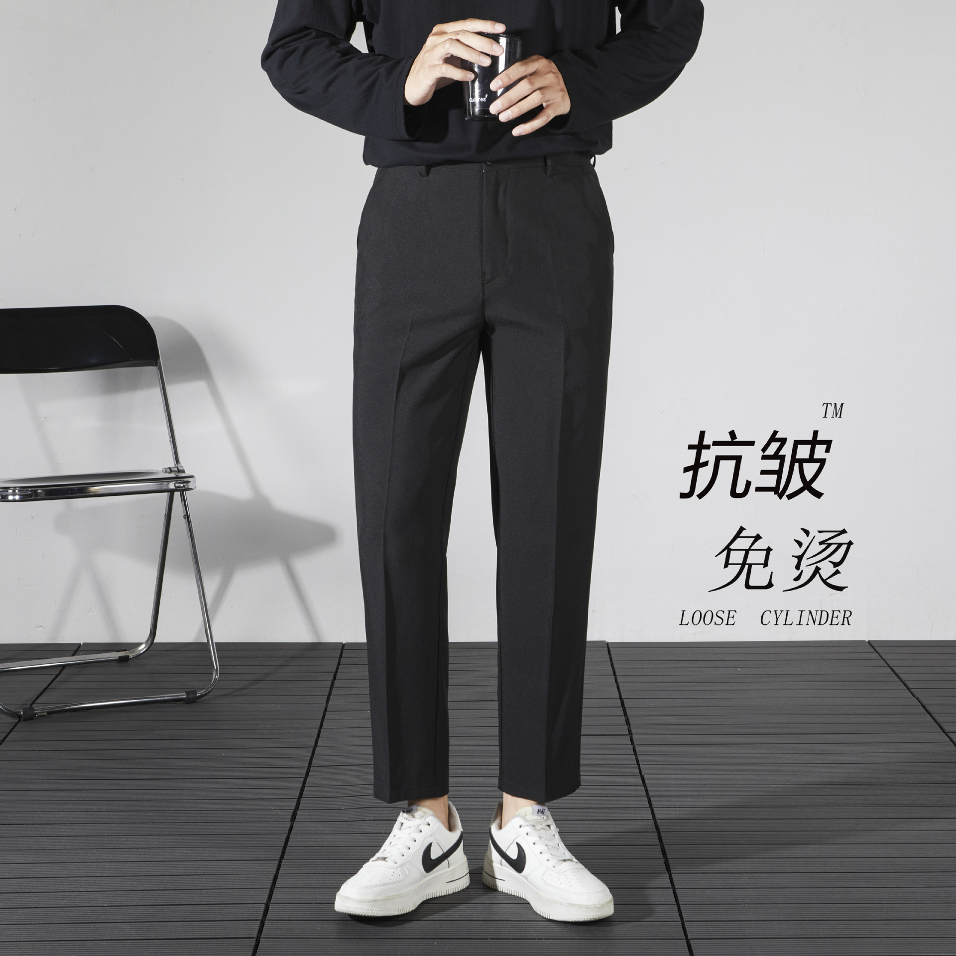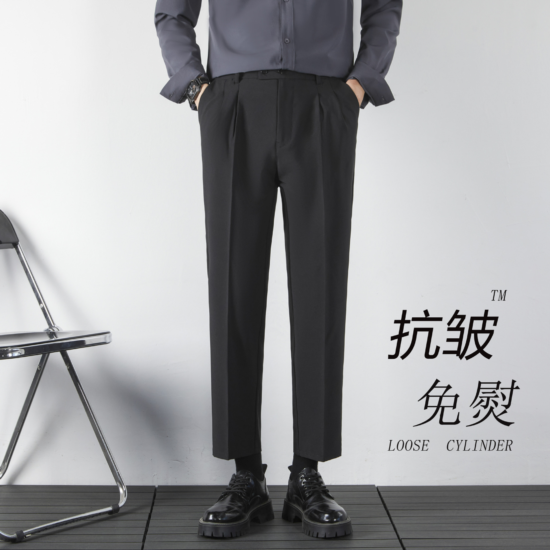 垂れ下がった感じの小さいズボンの男性の春と秋の韓国版のゆったりしているストレートのカジュアルなズボンの男性の軽い贅沢は9分のスーツのズボンにアイロンをかけません。