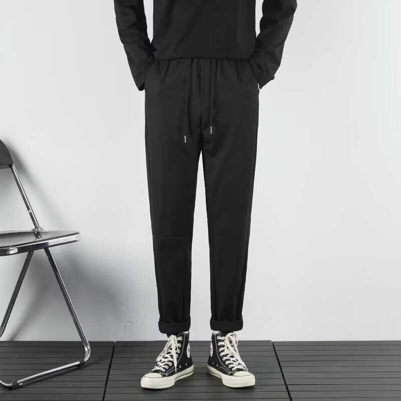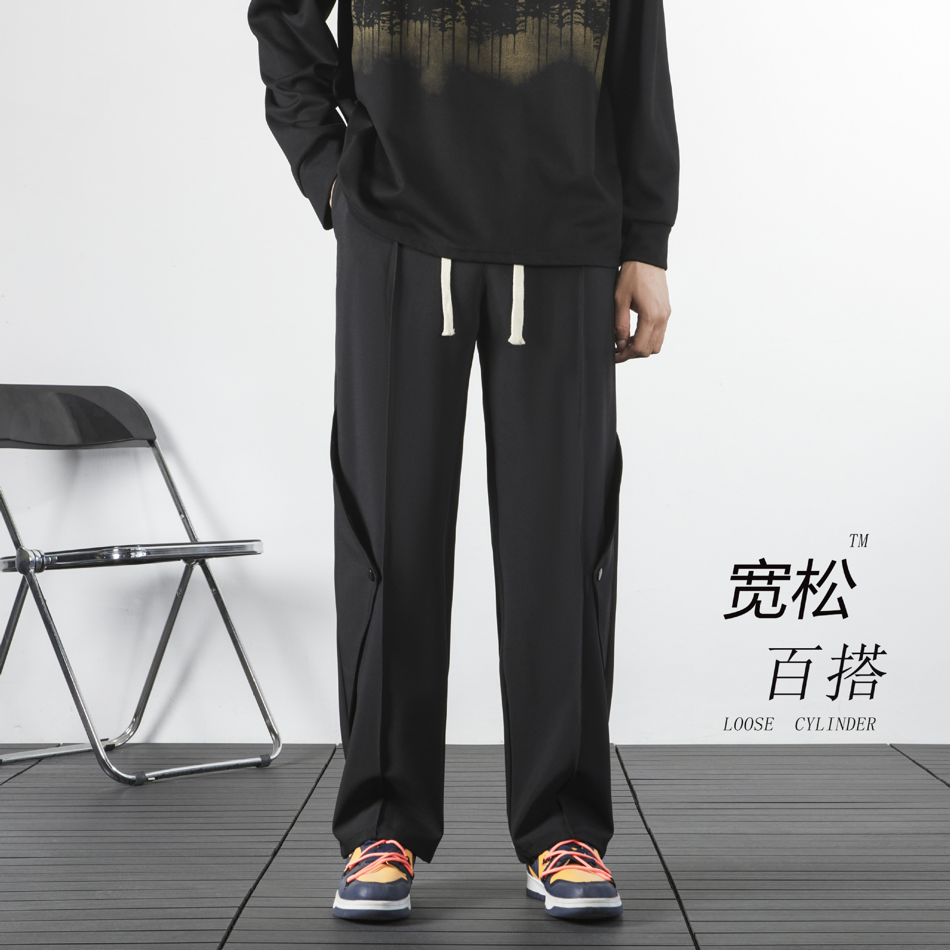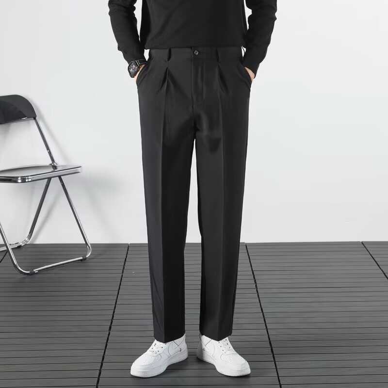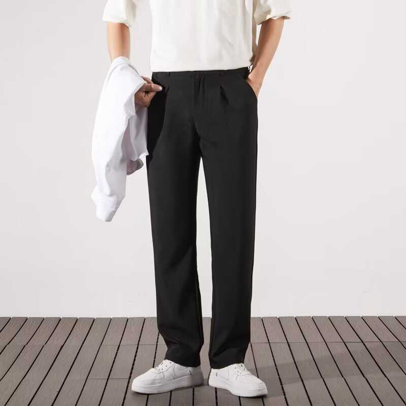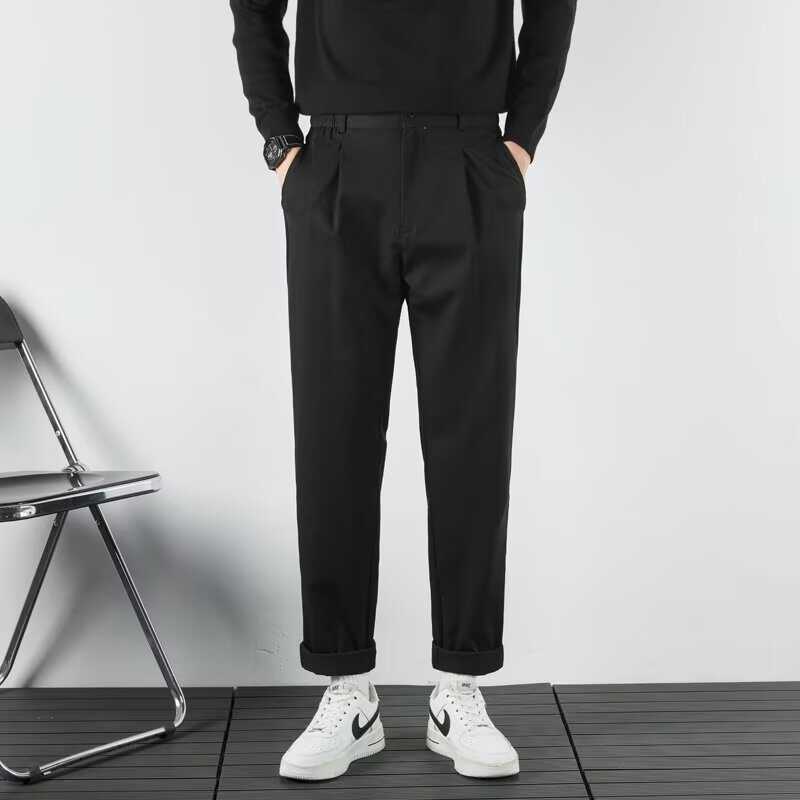 ビジネスブラックパンツメンズ春夏トレンドカジュアル小足スーツストレートドレープスリム9点パンツ