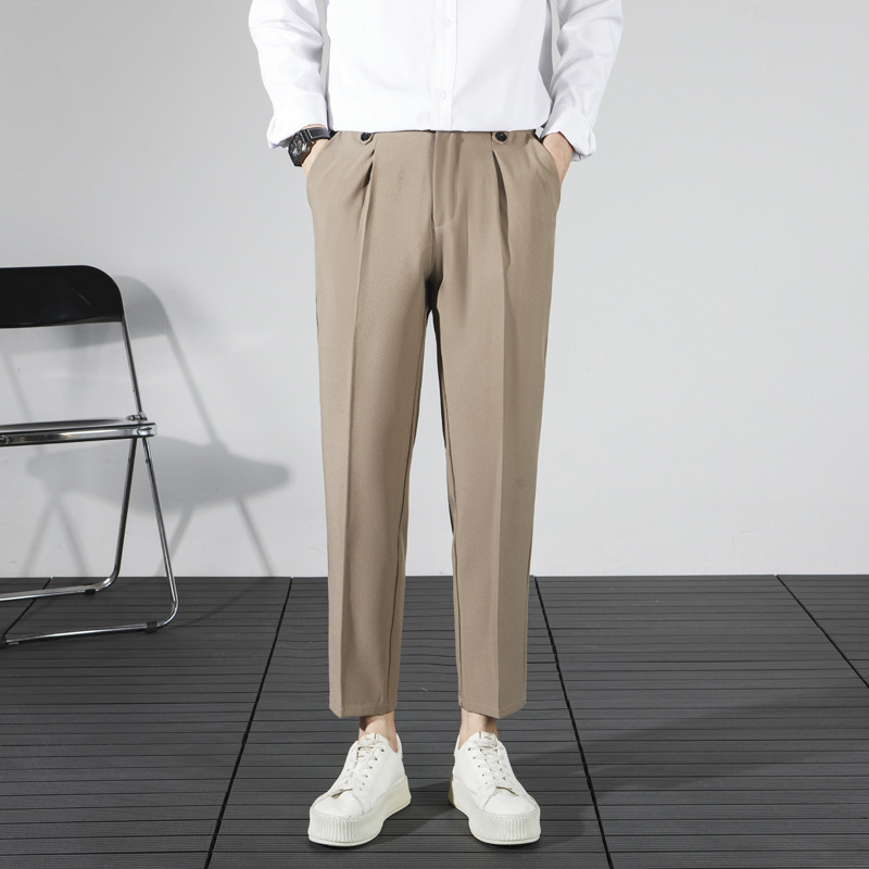 スリムストレートビジネスカジュアル9分小ズボン男性軽熟風高級スーツズボン抗シワ感無料