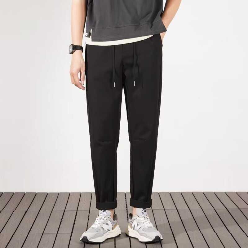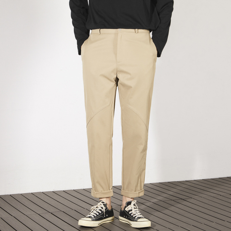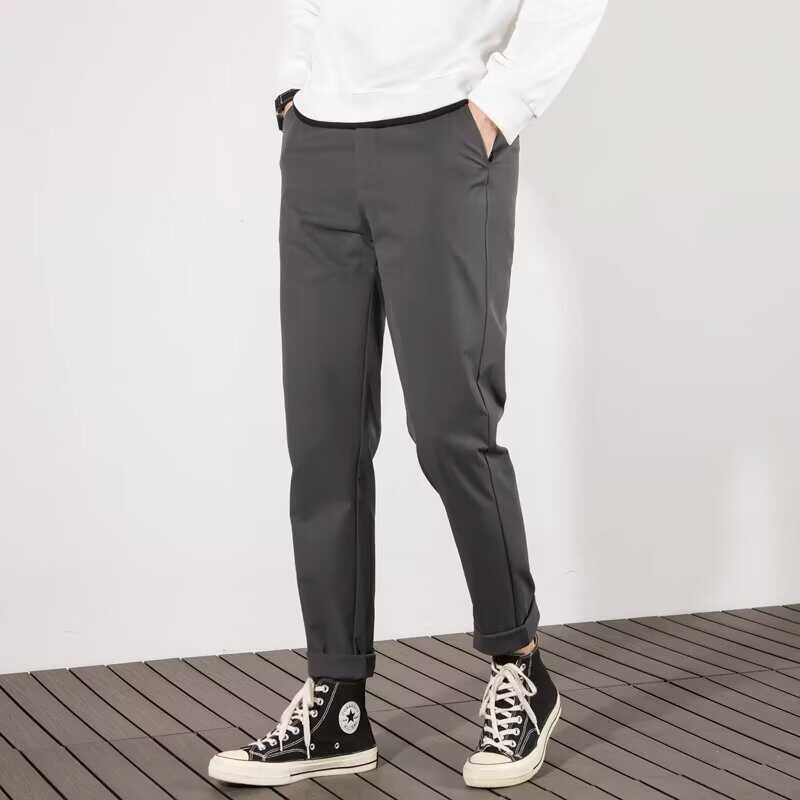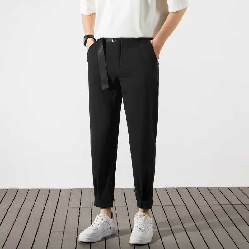 ビジネス風ストレート九分カジュアルパンツ男性修身春ファッションinsファッション青少年純色小足ズボン
