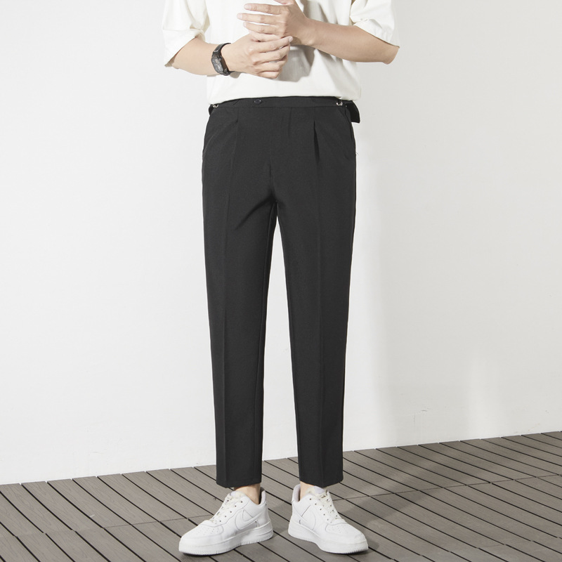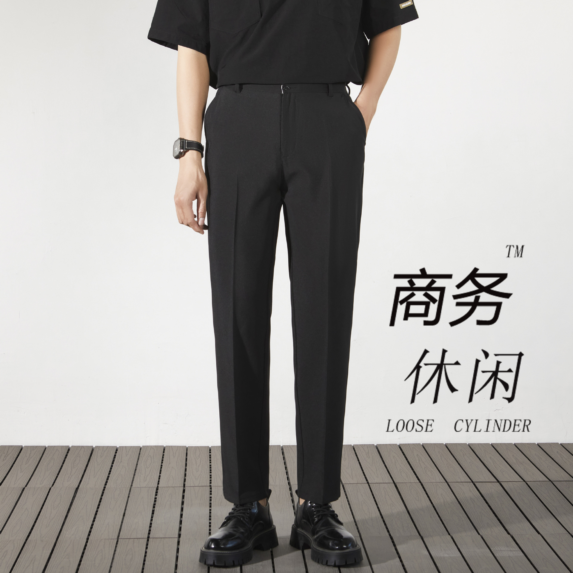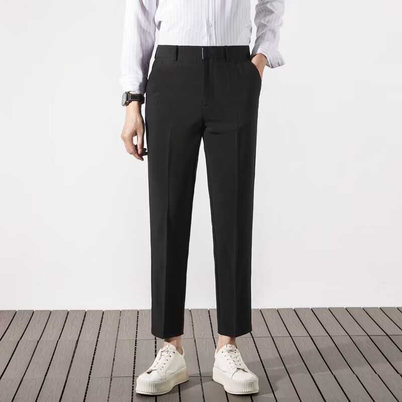 春夏2024パーマフリーストレート九分小ズボン男性薄いタイプのカジュアルファッション修身スーツズボンビジネス