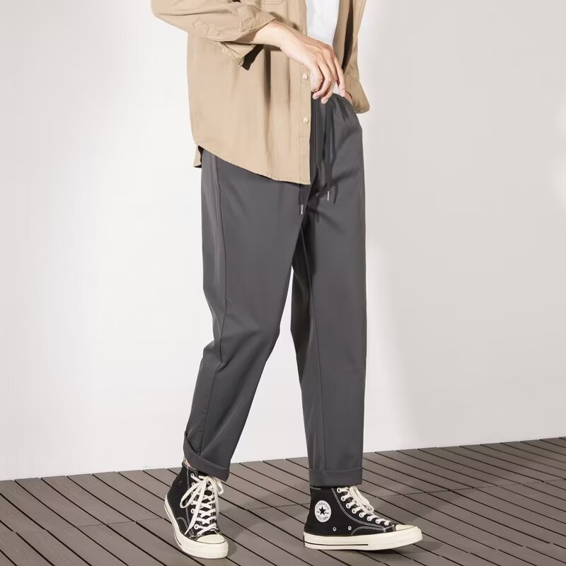 日本系シンプルなテーパードストレート九分カジュアルパンツ男性修身高級垂れ込み感があります。