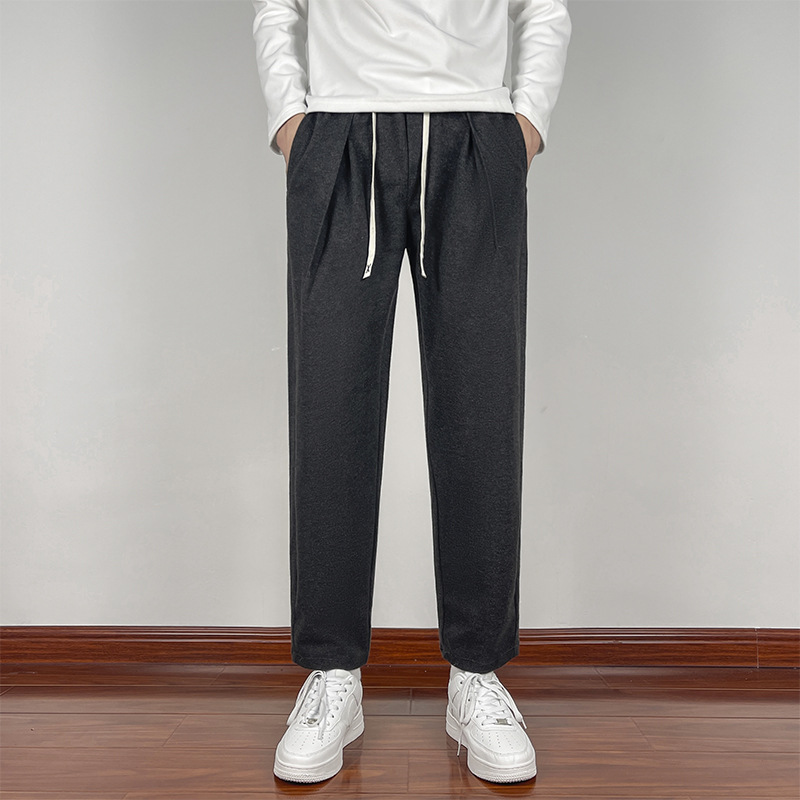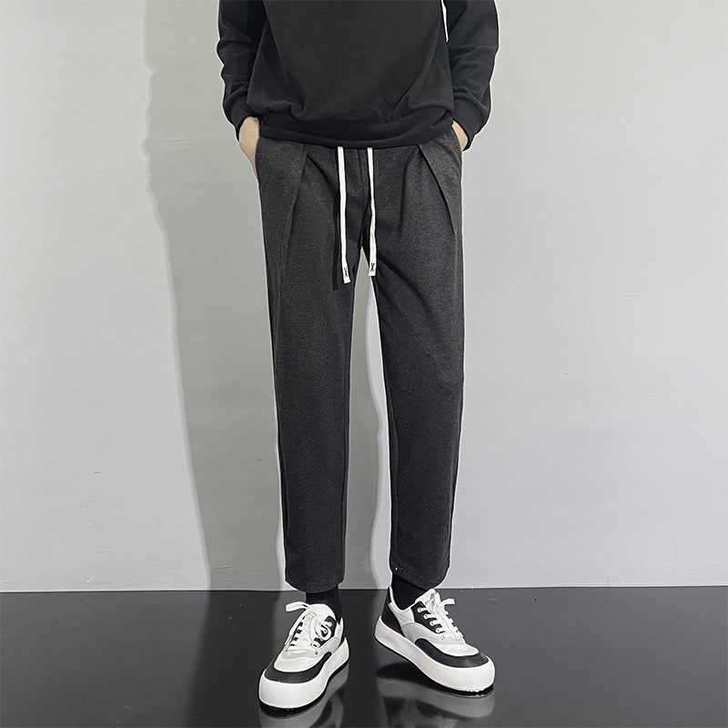 休闲男装裤九分冬季修身韩版新款锥形宽松侧边松紧垂感束脚西裤男