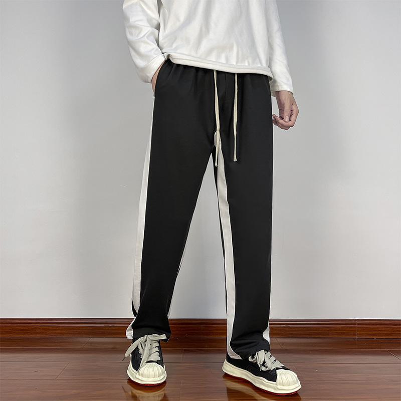 休闲裤男韩版潮流宽松直筒长裤男2022春秋季新款运动裤白边裤子男