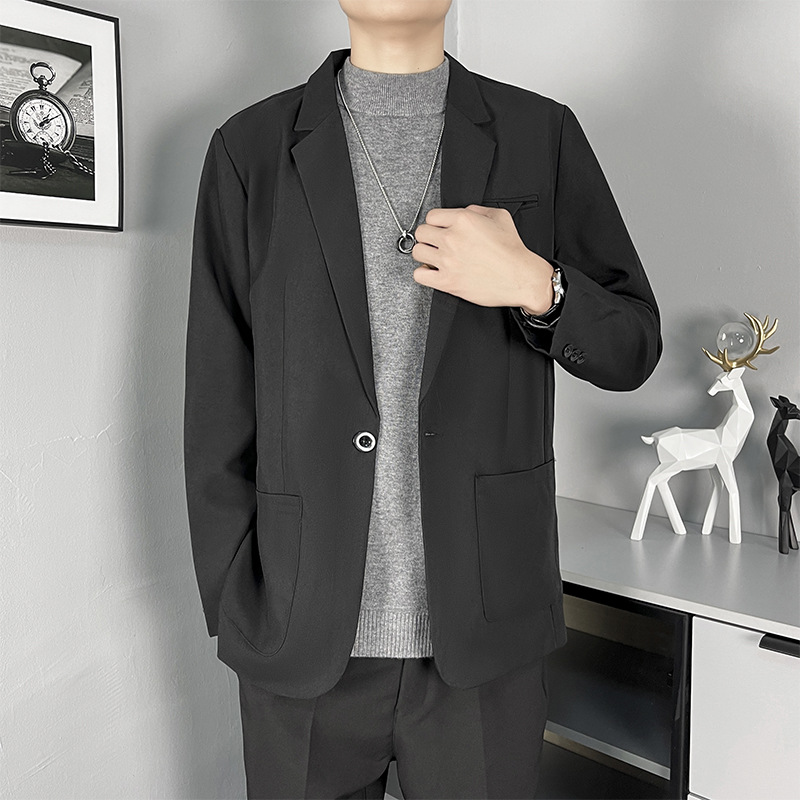 コートの男性の垂れ下がった感じの春と秋の小さいスーツのビジネスの長袖のまっすぐな筒のスーツの青少年の潮流はアイロンをかけません。