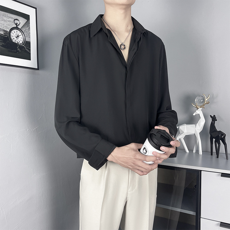 メンズ長袖シャツ秋のゆったりとした韓国風ファッション高級感寸シャツビジネスの軽熟風カジュアルな純色シャツ