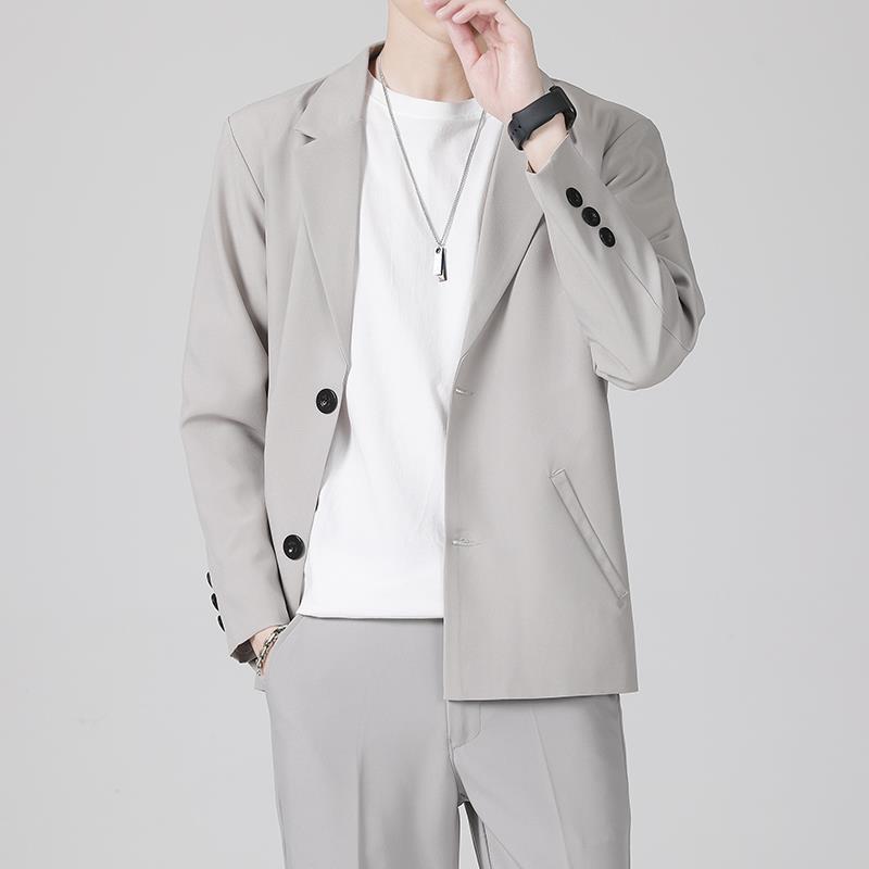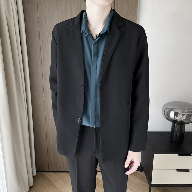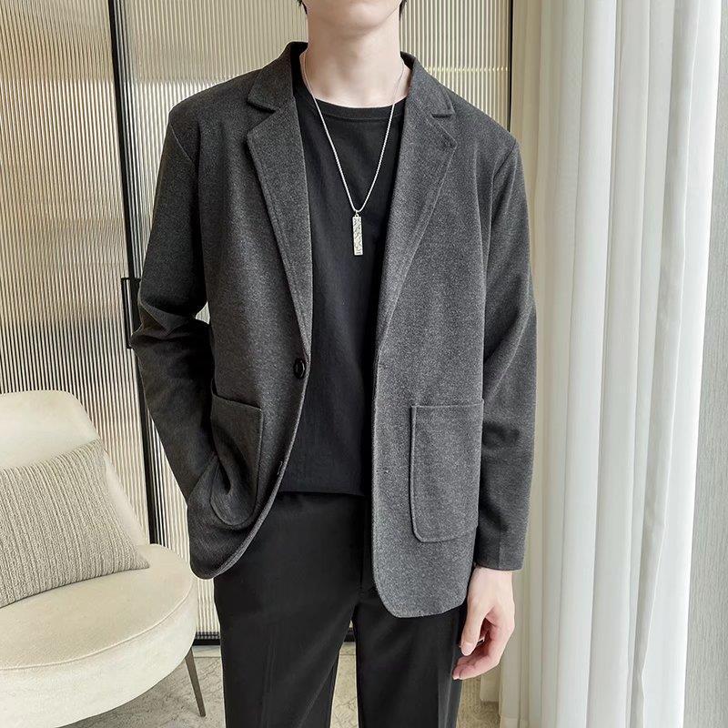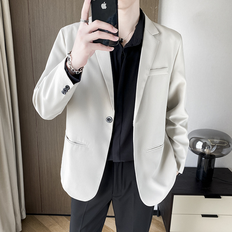 韓国版修身単西コート男性小スーツ春秋高級感純色カジュアル英倫百合コート男性