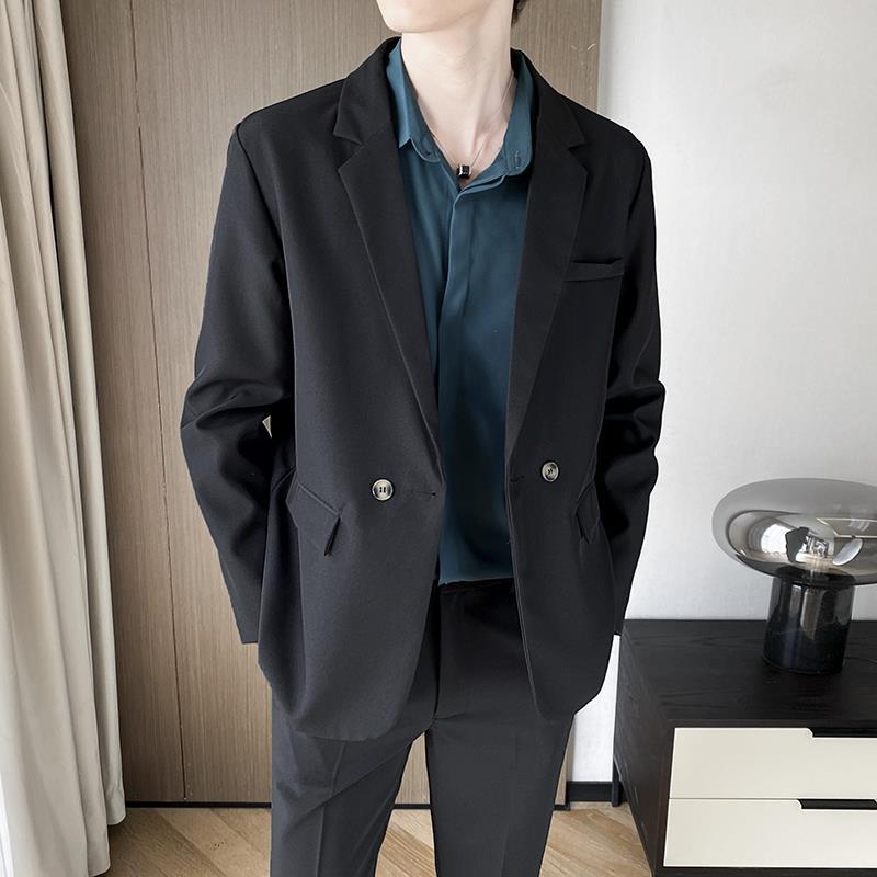 香港風スーツジャケット男性修身ins潮高級男性服百合ファッション黒男性服カジュアルスーツ