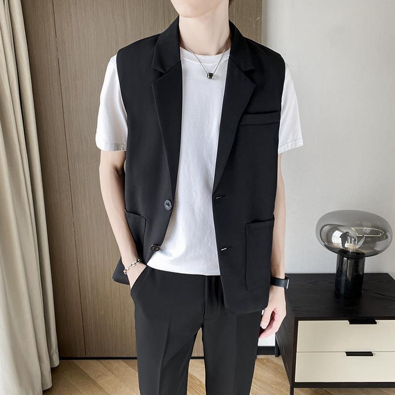 夏のスーツのベスト男の日本式のコートの高級感のノースリーブのベストの潮流の百合のごろつきのかっこいい髪のスタイリストの馬の挟みの男