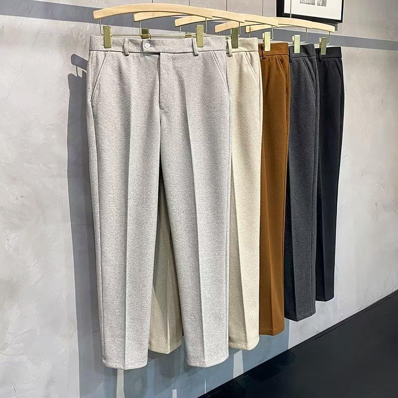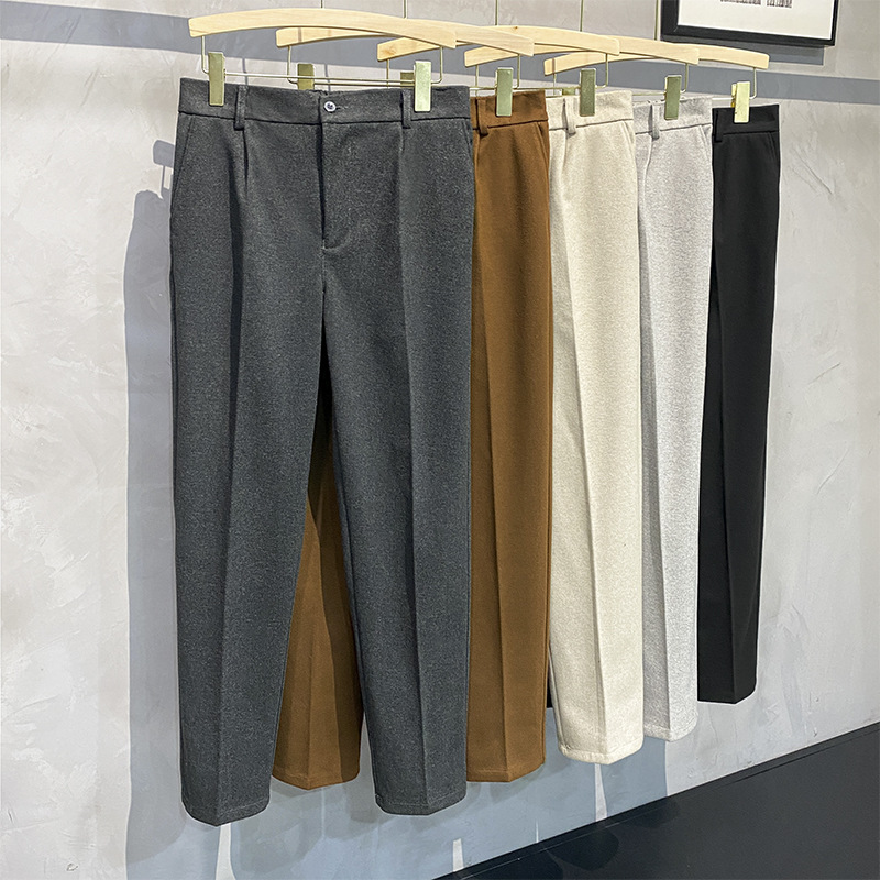 在庫一掃の毛漏れのズボンの男性の冬の厚手のスーツのズボンのストレートのペンダント感の小さいズボンの男性は毛のカジュアルなズボンを磨いています。