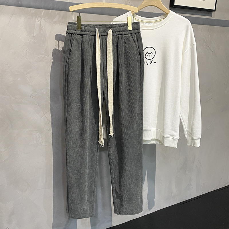 コーデュロイの長いズボンの男性の韓国版の潮流は厚くて垂れ下がった感じの9分のズボンの男性のカジュアルなズボンの秋冬の2022新型です。