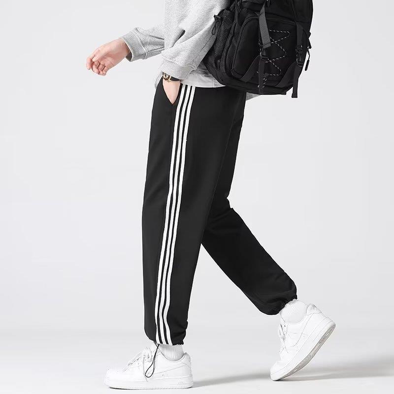 ストライプはバスケットボールのスポーツズボンの男性の韓国版の潮流の高い街のecのファッションのブランドのゆったりしているレジャーの縄の束の足の衛のズボンをつなぎ合わせます。