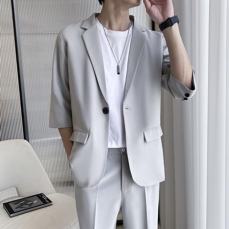 休闲轻熟风小西装男短袖夏季外套韩版潮流雅痞帅气轻薄款短袖西服