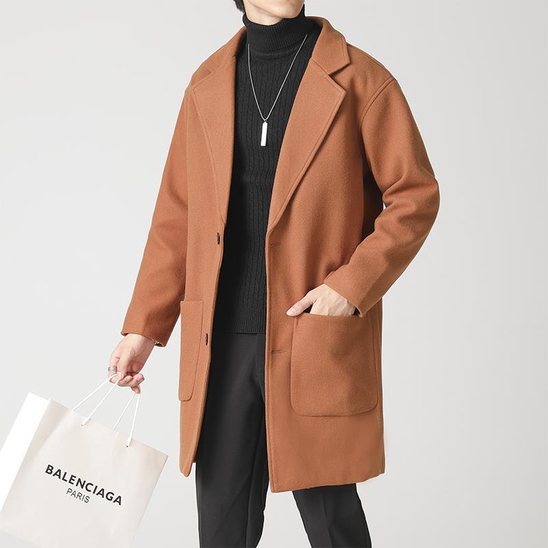 秋冬季英伦西装领羊毛呢子大衣中长款毛呢外套宽松纯色韩版风衣男