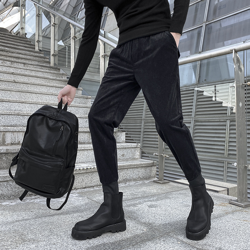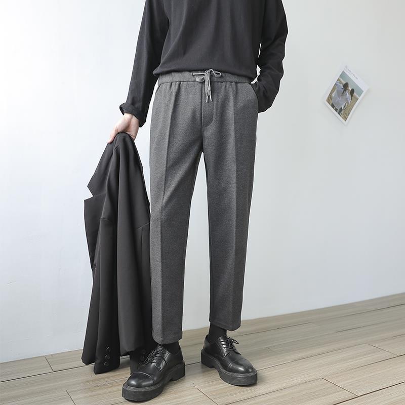 純色のウエストを緩めた男性カジュアル九分ズボンの男性服2021秋の新型毛です。