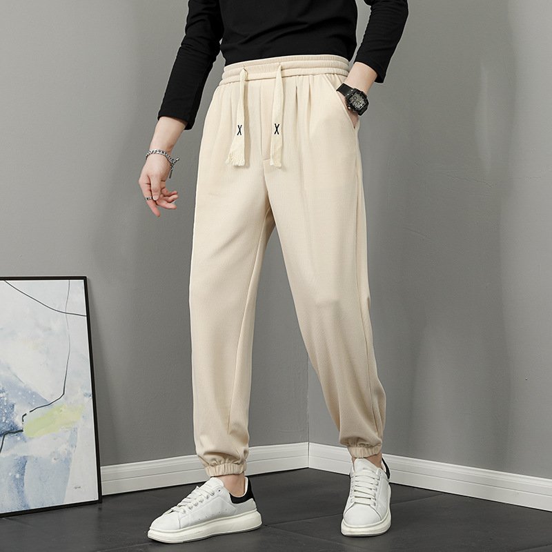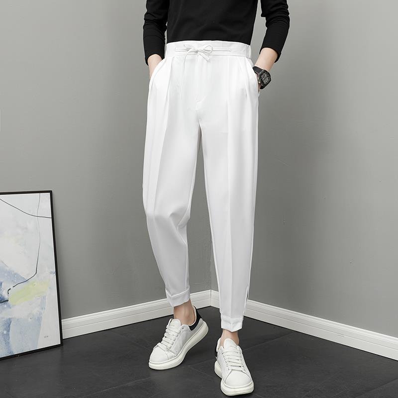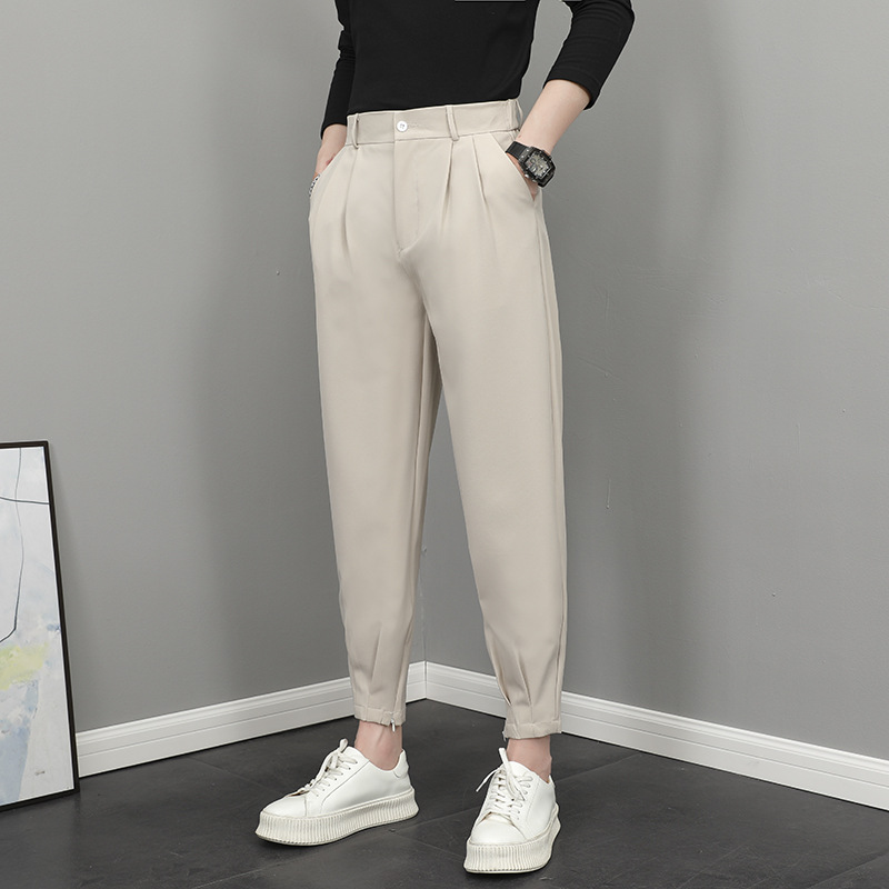 2022夏の純色カジュアルパンツ男性英倫無熱修身テーパードスーツ男性足ハーレムズボン