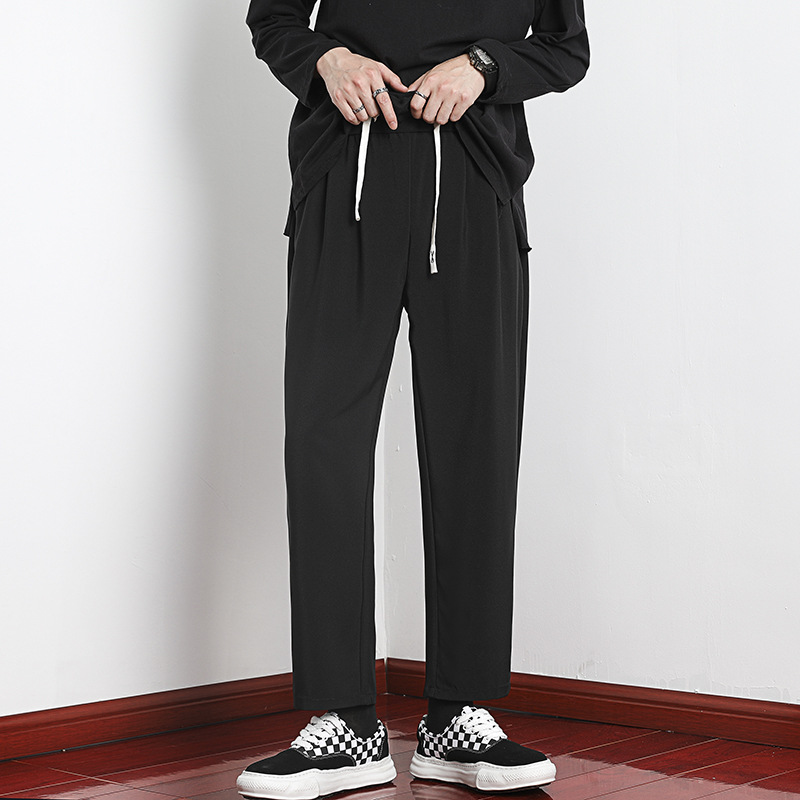 休闲裤男高级感直筒宽松裤子ins潮流松紧运动九分修身坠感西装裤